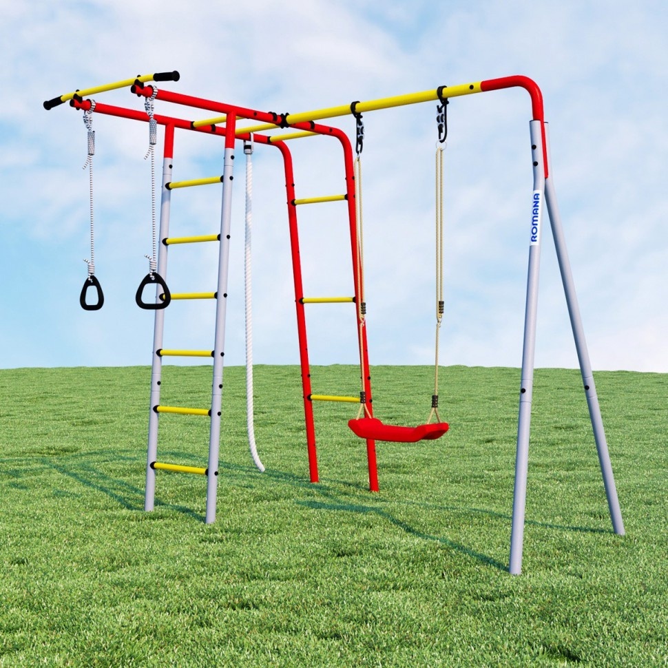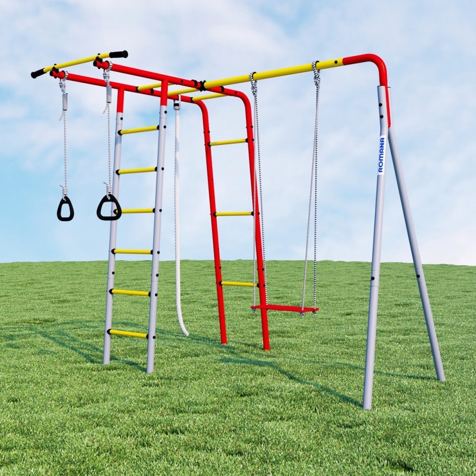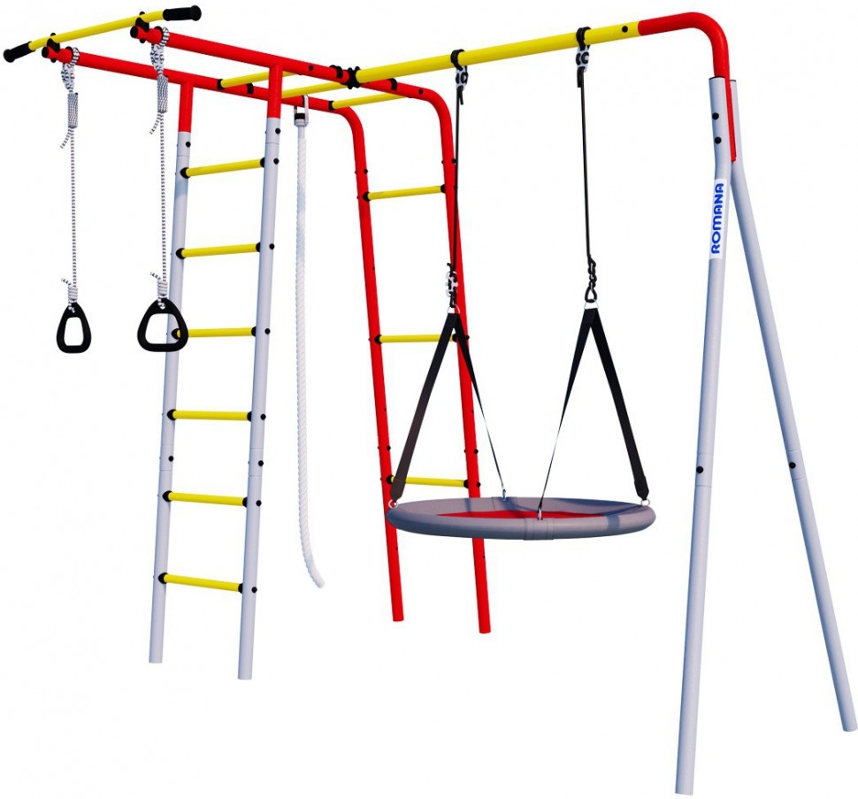 Разрабатывая игровой комплекс Romana Лесная поляна-2, производитель в полной мере позаботился о безопасности маленьких пользователей! Эта модель предназначена для детей, начиная с трехлетнего возраста и до 10-12 лет. За счет своей невысокой высоты, детский игровой комплекс обеспечивает безопасность в процессе ежедневного использования. А большое количество навесного спортивного оборудования – обеспечивает детям все необходимые условия для спорта и игры. В этом игровом комплексе детям понравятся легкие качели, гимнастические кольца, рукоход и канат. Универсальность конструкции позволяет также добавить и другое навесное спортивное оборудование, например, закрепить боксерский мешок или повесить веревочную лестницу, которая развивает правильную координацию. Благодаря прочной металлической конструкции игрового комплекса обеспечивается надежность и долговечность эксплуатации, а простой монтаж позволяет установить его на дачном участке или возле своего коттеджа.