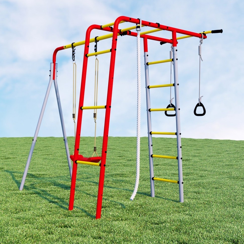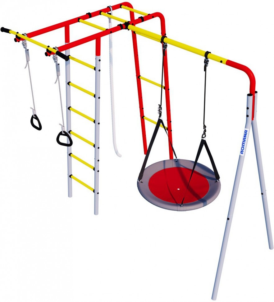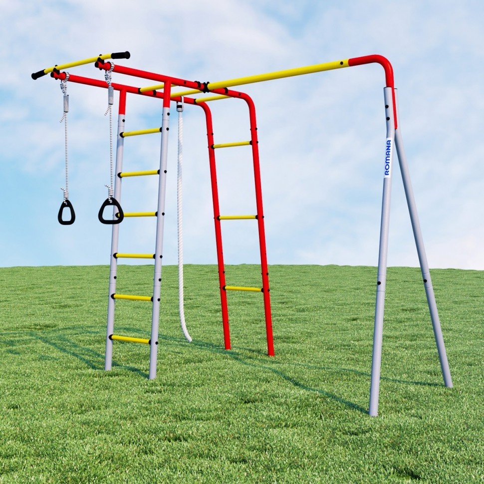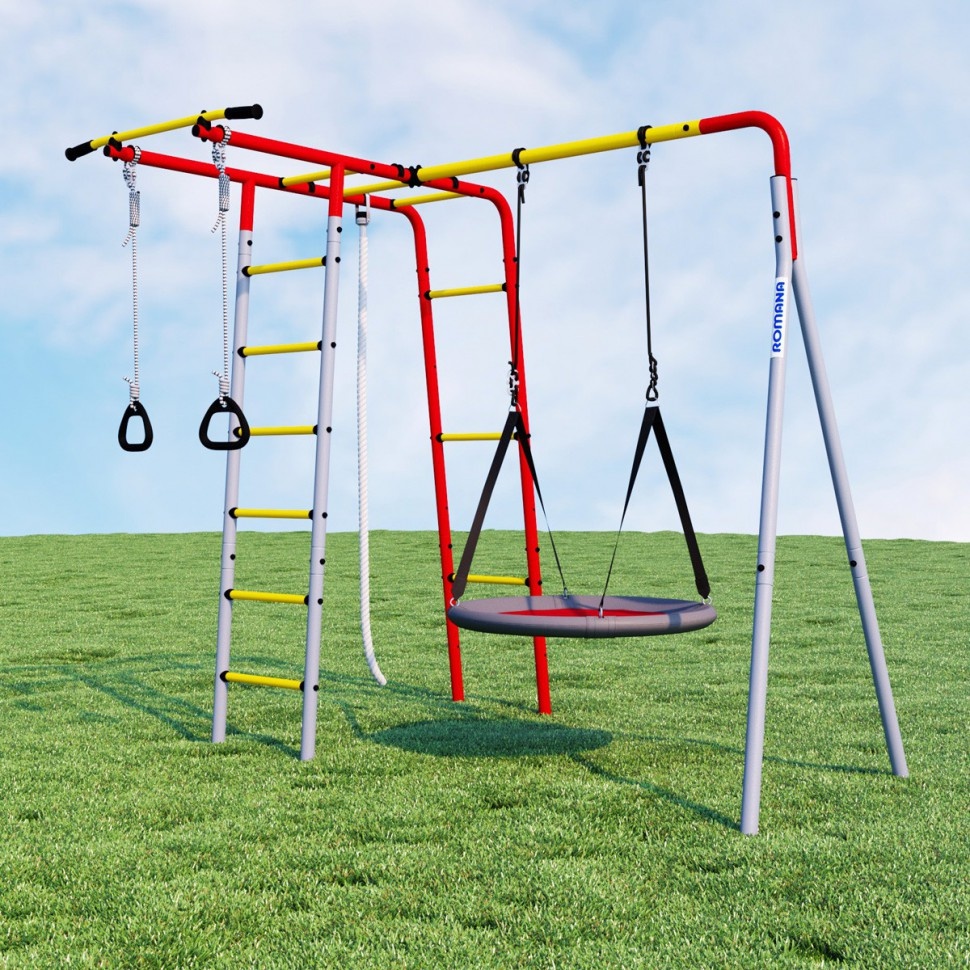 Разрабатывая игровой комплекс Romana Лесная поляна-2, производитель в полной мере позаботился о безопасности маленьких пользователей! Эта модель предназначена для детей, начиная с трехлетнего возраста и до 10-12 лет. За счет своей невысокой высоты, детский игровой комплекс обеспечивает безопасность в процессе ежедневного использования. А большое количество навесного спортивного оборудования – обеспечивает детям все необходимые условия для спорта и игры. В этом игровом комплексе детям понравятся легкие качели, гимнастические кольца, рукоход и канат. Универсальность конструкции позволяет также добавить и другое навесное спортивное оборудование, например, закрепить боксерский мешок или повесить веревочную лестницу, которая развивает правильную координацию. Благодаря прочной металлической конструкции игрового комплекса обеспечивается надежность и долговечность эксплуатации, а простой монтаж позволяет установить его на дачном участке или возле своего коттеджа.