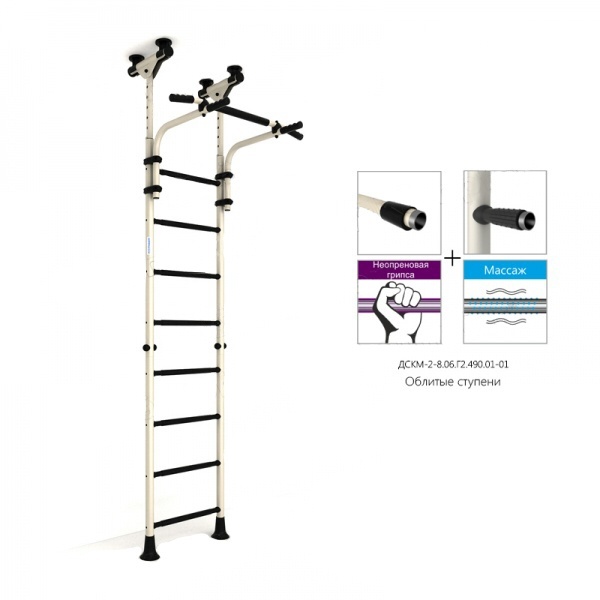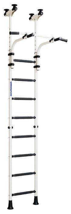 Шведская стенка Romana R8 имеет минимальные габариты, поэтому может устанавливаться даже в небольшом помещении с экономией места. Конструкция устанавливается между полом и потолком, поэтому в процессе монтажа не стоит учитывать несущую способность стены – самое главное, чтобы потолок не был выполнен из гипсокартона или других хрупких материалов. Шведская стенка изготовлена из металла, поэтому демонстрирует рекордно долгий срок службы. Для регулярных тренировок предусмотрен турник, который вынесен от стены и оснащен удобными рукоятками с противоскользящим покрытием. На перекладинах лестницы также имеется специальное покрытие, которое защищает от скольжения. Дизайн конструкции – простой, лаконичный и выглядит стильно в любом интерьере. Качество, надежность, удобство и безопасность – с помощью этой шведской стенки занятия спортом станут доступными для детей и взрослых!