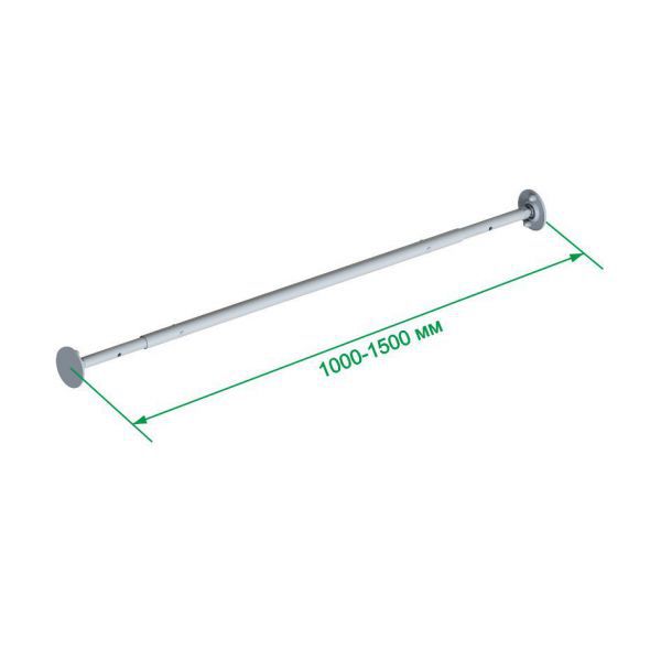 Турник распорный состоит из металлической трубы с телескопическими вставками, позволяющими регулировать установочную длину турника от 100 до 150 см в зависимости от ширины проема.