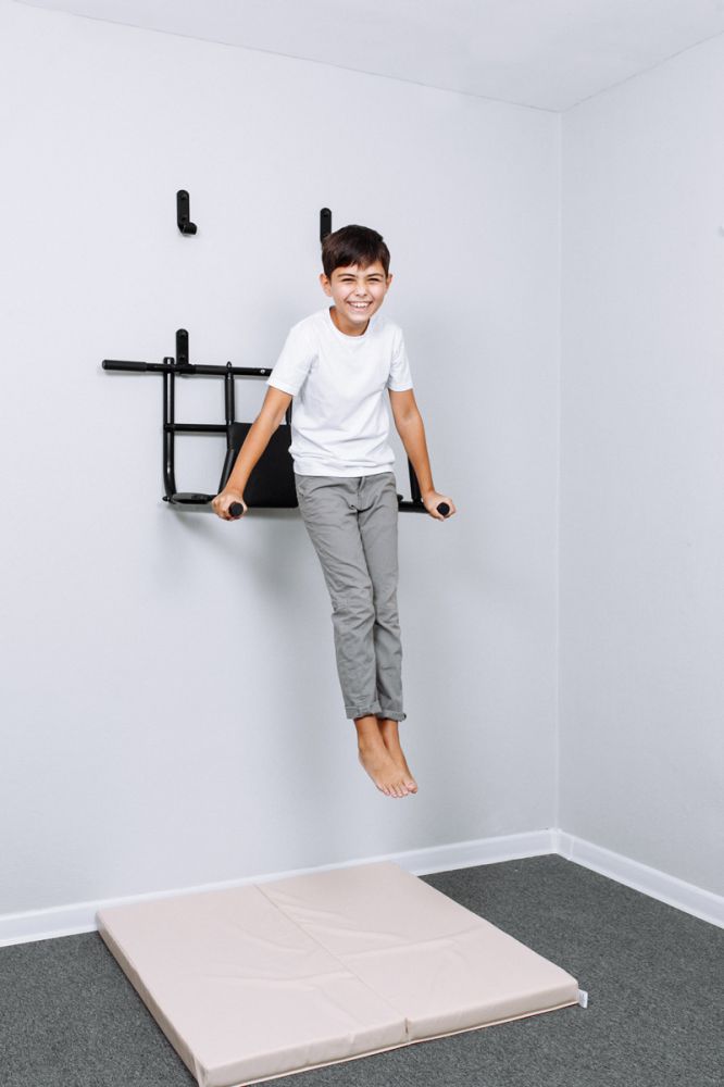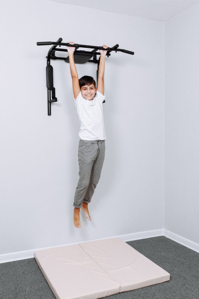 Пластиковые рукоятки и мягкие прорезиненные накладки,находящиеся на грифе, удобны в использовании, и исключают натирание и проскальзывание рук. Приобретайте наш настенный турник и занимайтесь физической культурой у себя дома!