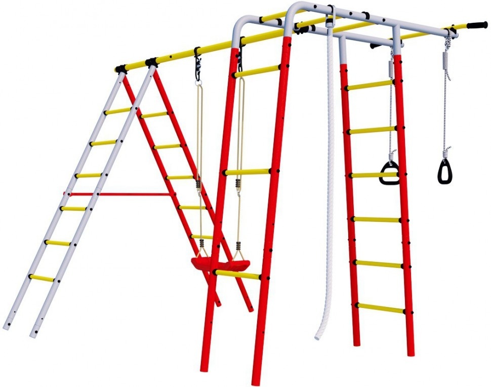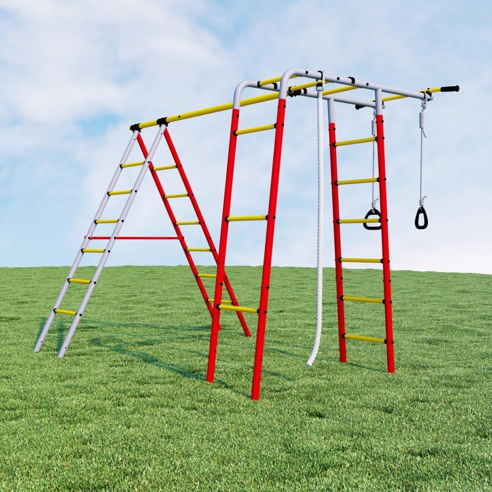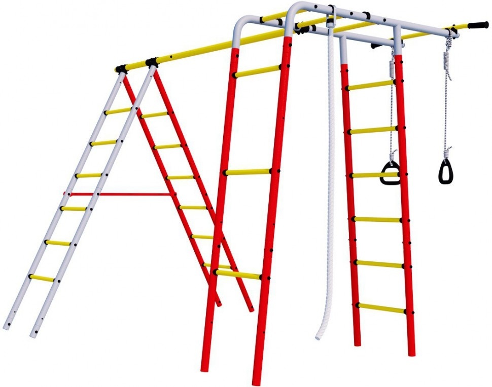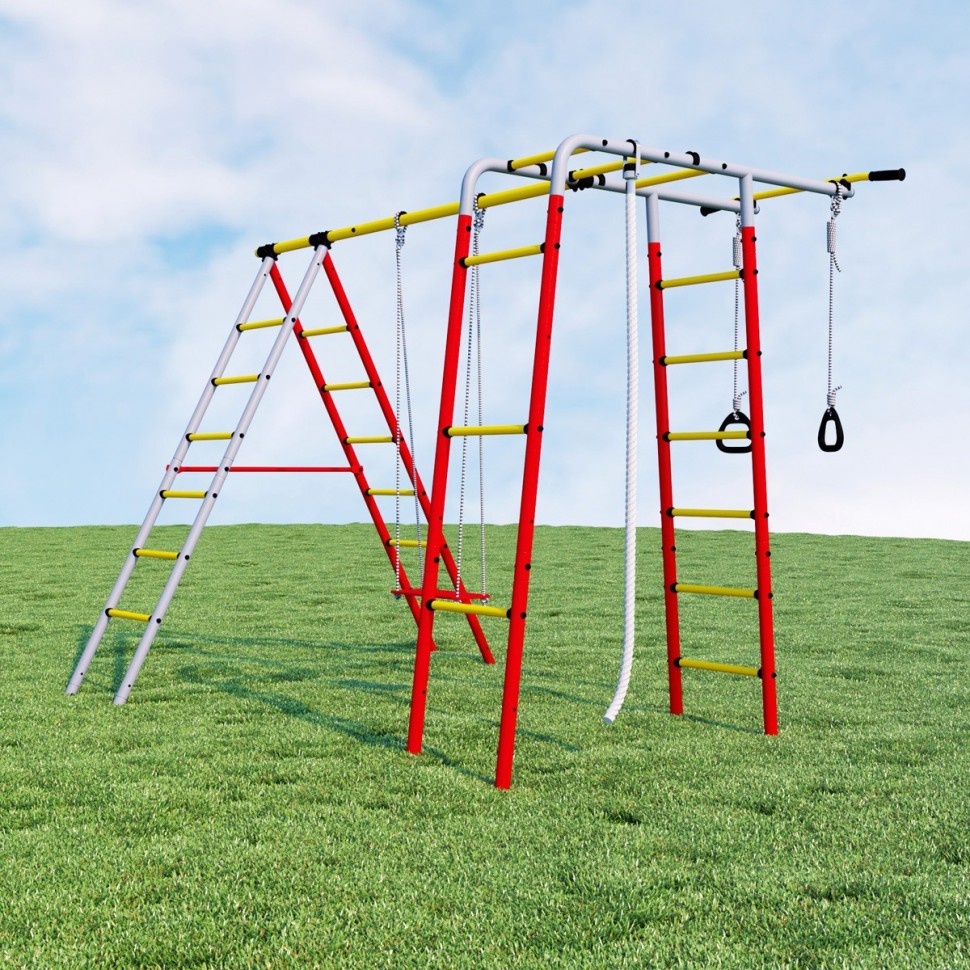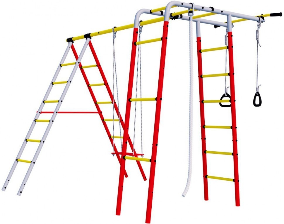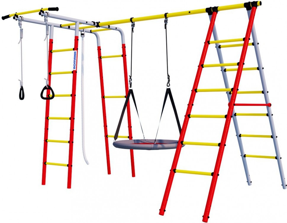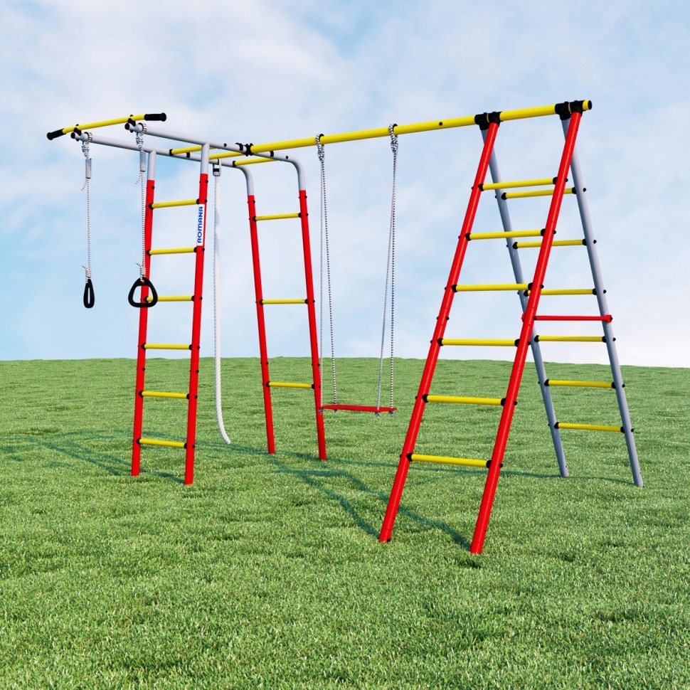 Благодаря уличному комплексу Romana Букварь-2 у детей будет много новых возможностей для занятий спортом и активного отдыха! Это многофункциональная модель, в которой предусмотрено много разных спортивных и игровых элементов. Так, в комплексе имеются четыре лестницы гимнастические, перекладина для подтягивания, качели и рукоход. Производитель также выделил место для турника, каната и гимнастических колец. Со временем можно перевешивать дополнительное навесное оборудование, что позволяет создавать новые игровые зоны по мере роста и смены интересов детей. Детский комплекс изготовлен из металлических труб, которые обработаны порошковым покрытием от губительного воздействия влаги и образования коррозии. Монтаж детского комплекса осуществляется с помощью бетонирования металлических опор, поэтому конструкция обладает высокой надежностью, устойчивостью и качеством на протяжении десятилетий службы!