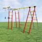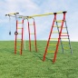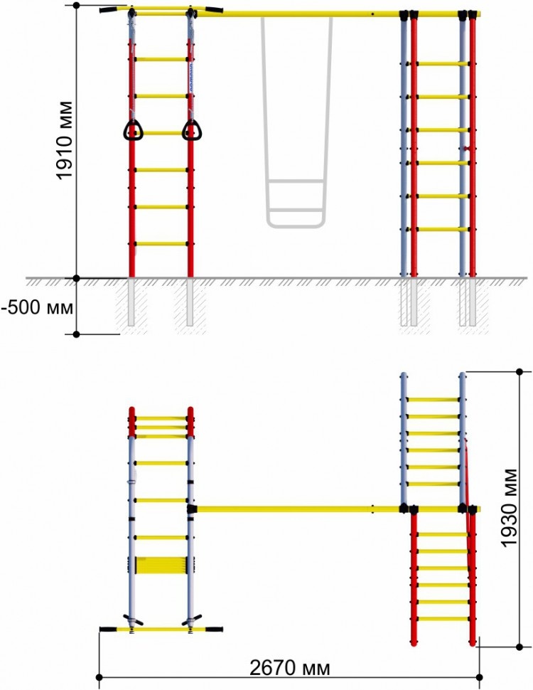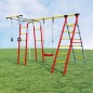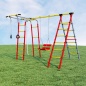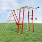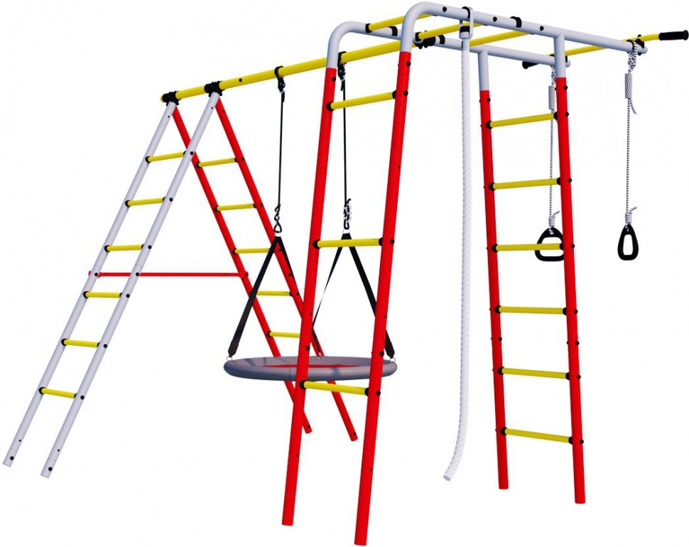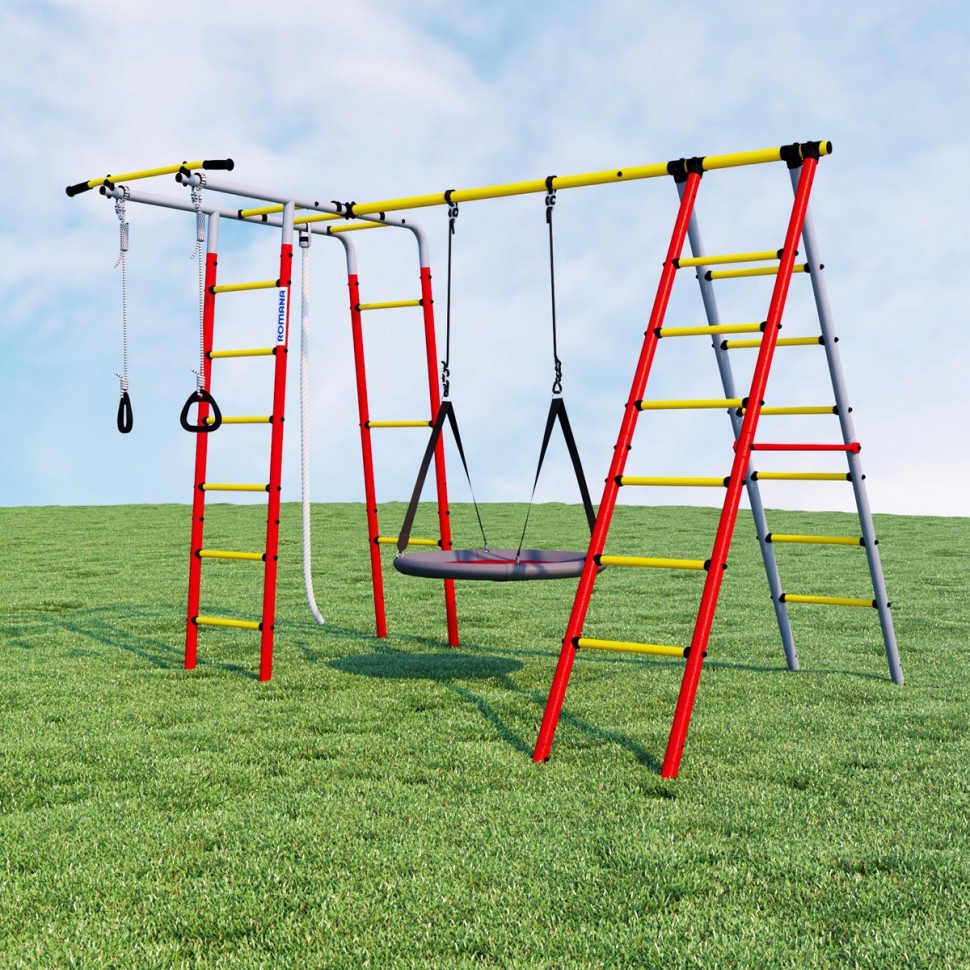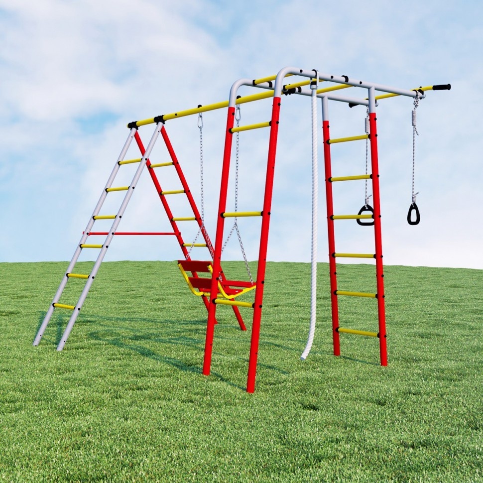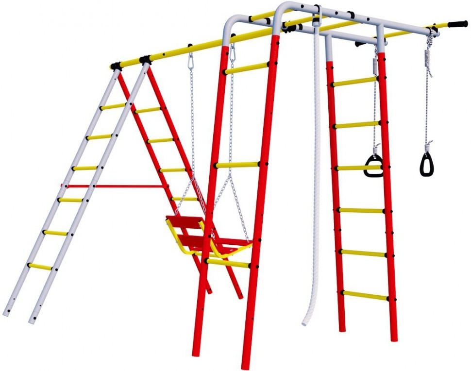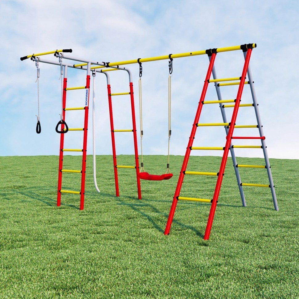 Благодаря уличному комплексу Romana Букварь-2 у детей будет много новых возможностей для занятий спортом и активного отдыха! Это многофункциональная модель, в которой предусмотрено много разных спортивных и игровых элементов. Так, в комплексе имеются четыре лестницы гимнастические, перекладина для подтягивания, качели и рукоход. Производитель также выделил место для турника, каната и гимнастических колец. Со временем можно перевешивать дополнительное навесное оборудование, что позволяет создавать новые игровые зоны по мере роста и смены интересов детей. Детский комплекс изготовлен из металлических труб, которые обработаны порошковым покрытием от губительного воздействия влаги и образования коррозии. Монтаж детского комплекса осуществляется с помощью бетонирования металлических опор, поэтому конструкция обладает высокой надежностью, устойчивостью и качеством на протяжении десятилетий службы!