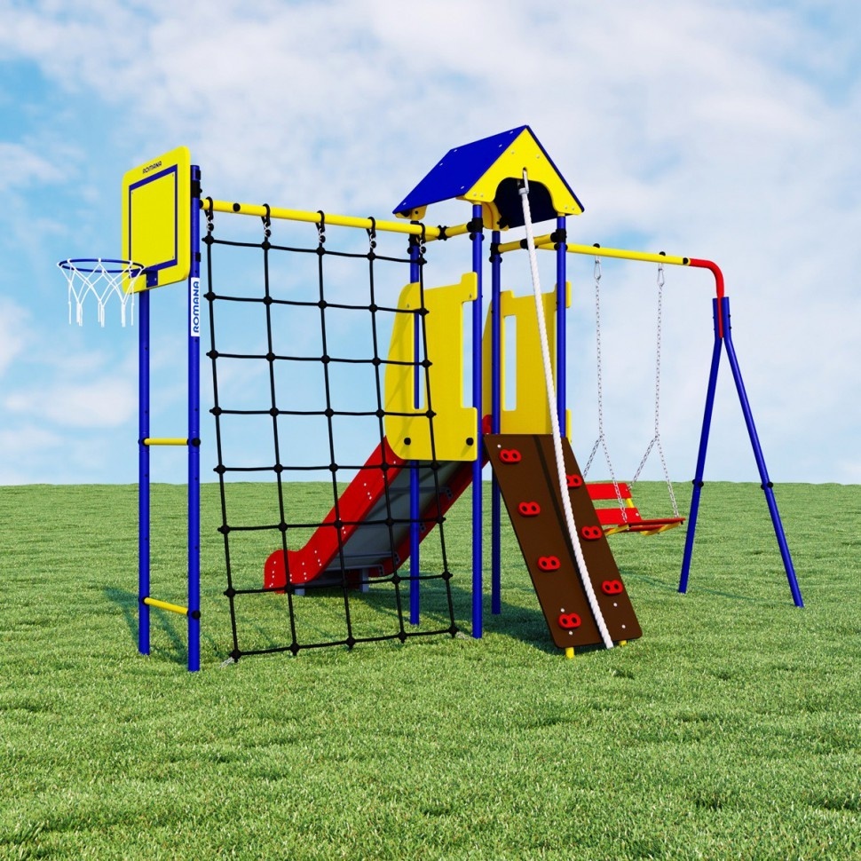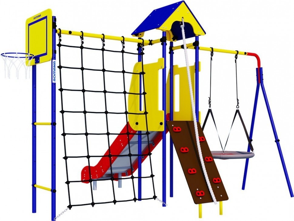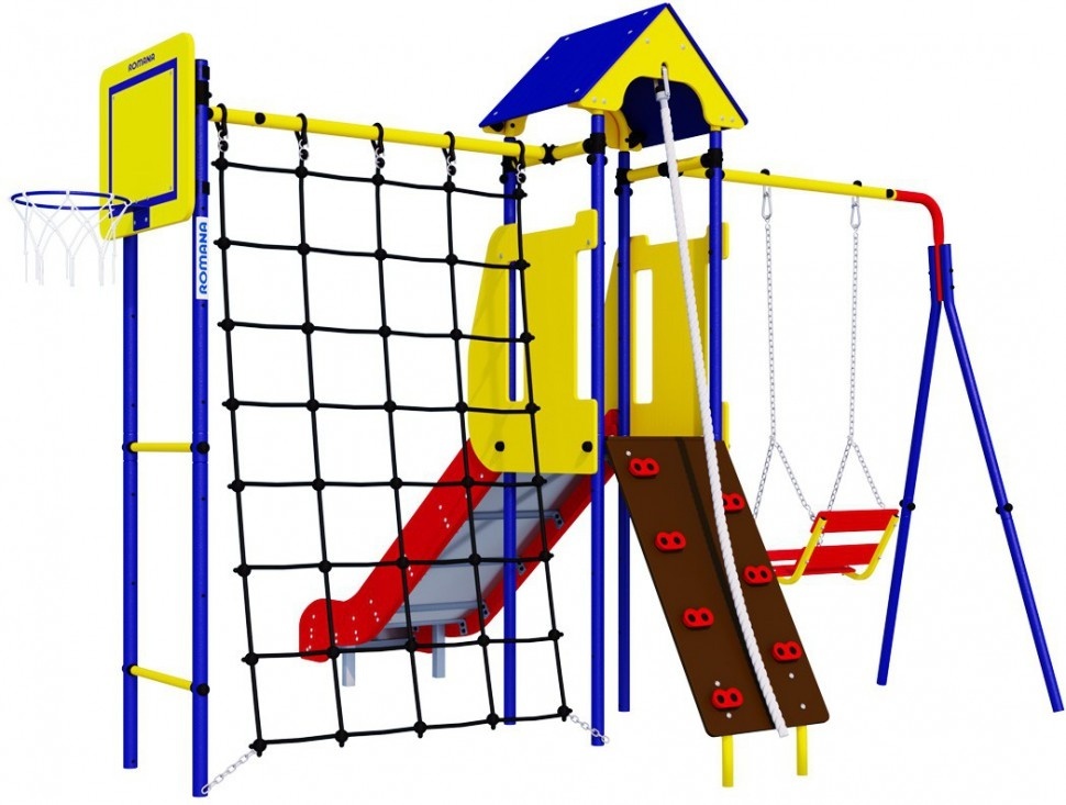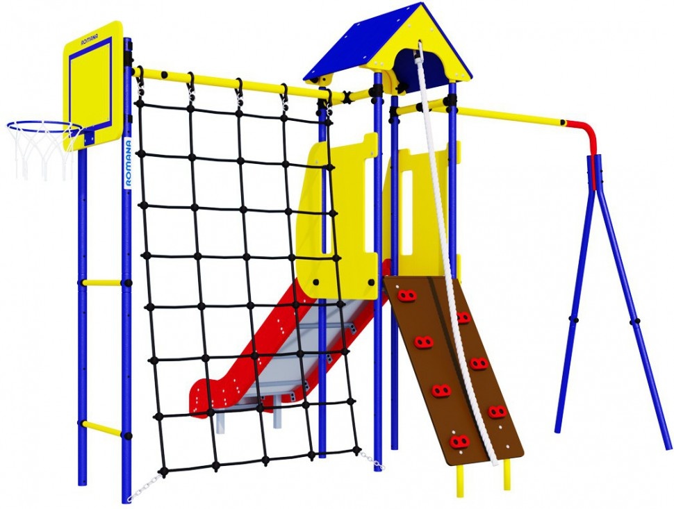 Детский комплекс для спорта и игр Romana Замок прослужит много лет, радуя своих маленьких хозяев и принося пользу для их здоровья. Он подходит для установки на даче или во дворе городского коттеджа. На этом комплексе можно играть нескольким детям одновременно, что идеально, если в семье не один ребенок. Удобно, что конструкция может разбираться для хранения в зимнее время года. Внимание привлекает также яркий и красочный дизайн изделия. Для активного досуга и регулярных занятий спортом детям предлагается горка, канатный лаз, баскетбольное кольцо, канат и скалолаз. Можно также дополнительно становить такие опции, как веревочная лестница и качели. Каркас детского комплекса выполняется из металла, поэтому он выдерживает высокие нагрузки. Благодаря детскому комплексу ребенок получает возможность больше времени проводить на свежем воздухе, что благотворно сказывается на здоровье и помогает познавать окружающий мир.