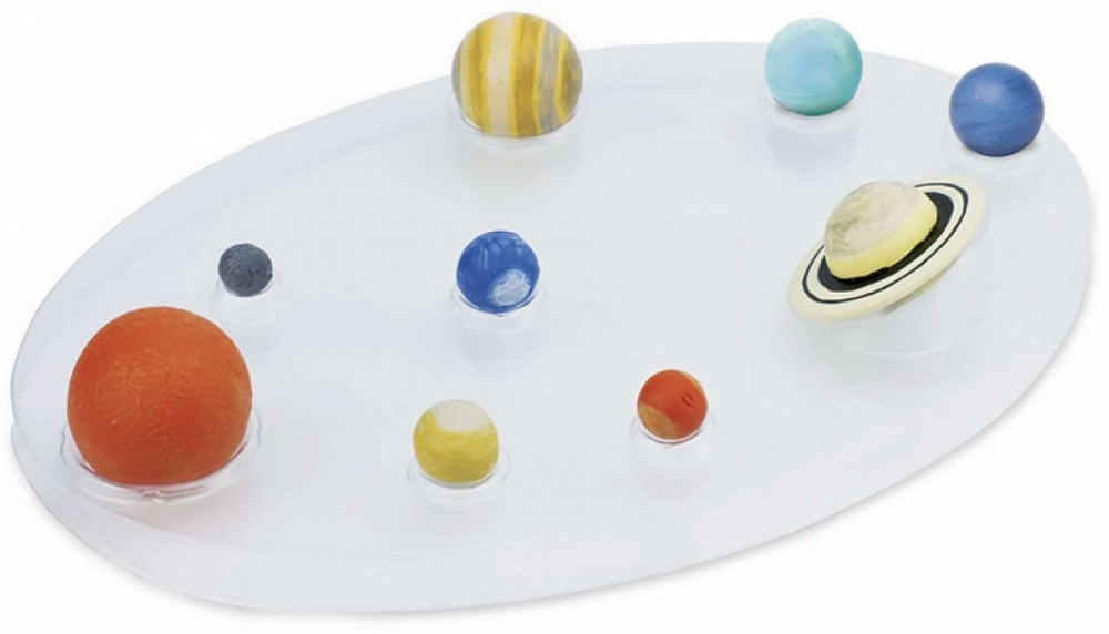 Каждую из 9 фигурок можно взять в руки и детально рассмотреть. Нужно разместить их на подставке в определенной последовательности, чтобы понять их расположение относительно Солнца.