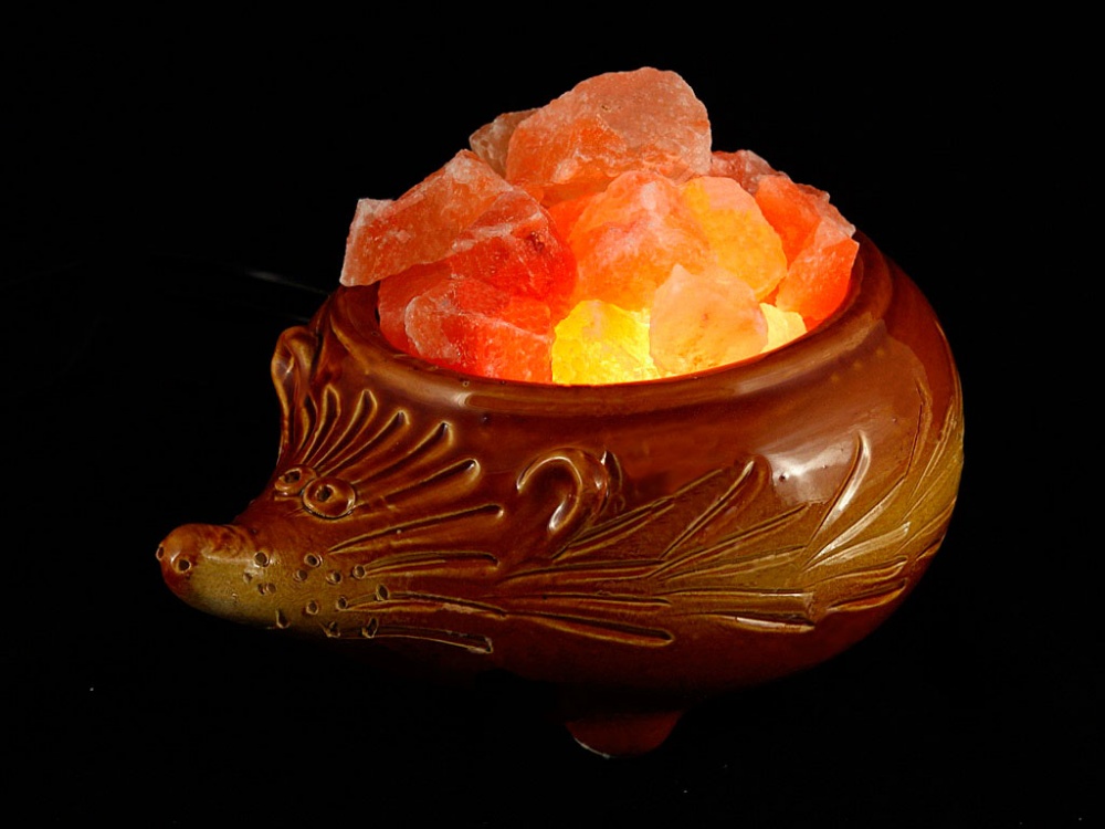 Соляная лампа "Ежик" вырабатывает отрицательные йоны, которые нейтрализуют излучение от бытовой техники. Оказывает общеукрепляющее воздействие на организм. Может работать как ночник.