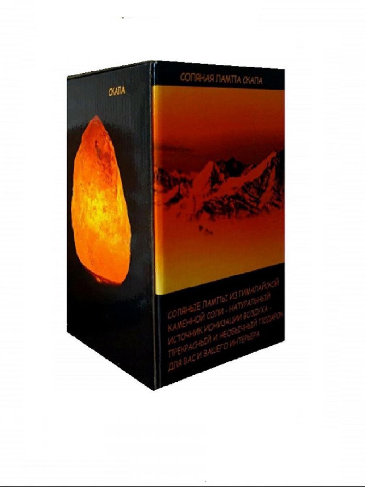 Лампа, основа которой - цельный кусок розовой соли, добытой в Гималаях, общим весом в 7-10 килограмм. Изготовлена вручную. Внутри расположена лампочка на 15 ватт. При нагреве соляной корпус выпускает отрицательно заряженные ионы в воздух, что улучшает его качество, убивает бактерии. Модель рекомендована для астматиков, людей, страдающих от хронических заболеваний верхних дыхательных путей. Подходит для детей. “Теплый” свет не мешает спать, что позволяет применять устройство в качестве ночника. Срок службы лампы - 5 лет, после чего потребуется ее замена. Модель питается только от розетки.
