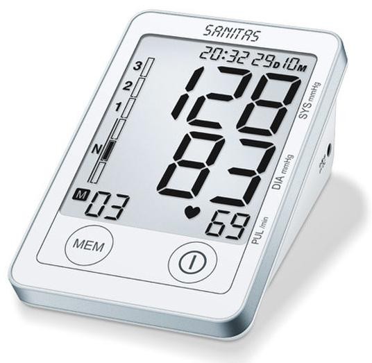 Автоматический тонометр Sanitas SBM45 используется для измерения давления и пульса в плечевой артерии. Аппарат оснащен контрастным, 4-строчным дисплеем, с индикатором аритмии, указанием времени и даты, а так же с графическим изображением нормативной шкалы значений давления по ВОЗ.