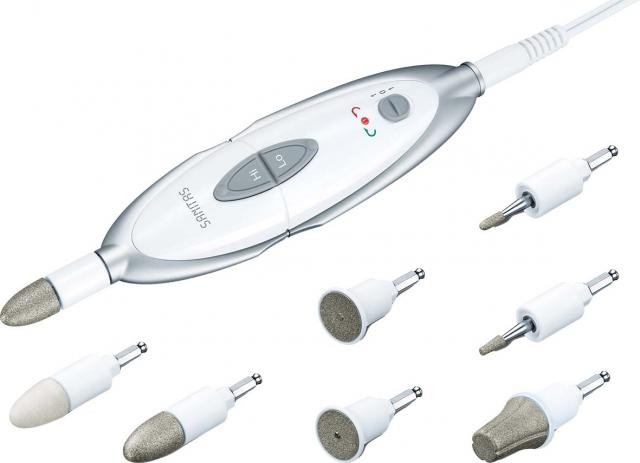 Маникюрно-педикюрный набор предназначен для косметического ухода за ногтями и стопами. Прибор имеет две скорости вращения насадок и реверс электромотора (насадки могут вращаться влево и вправо).