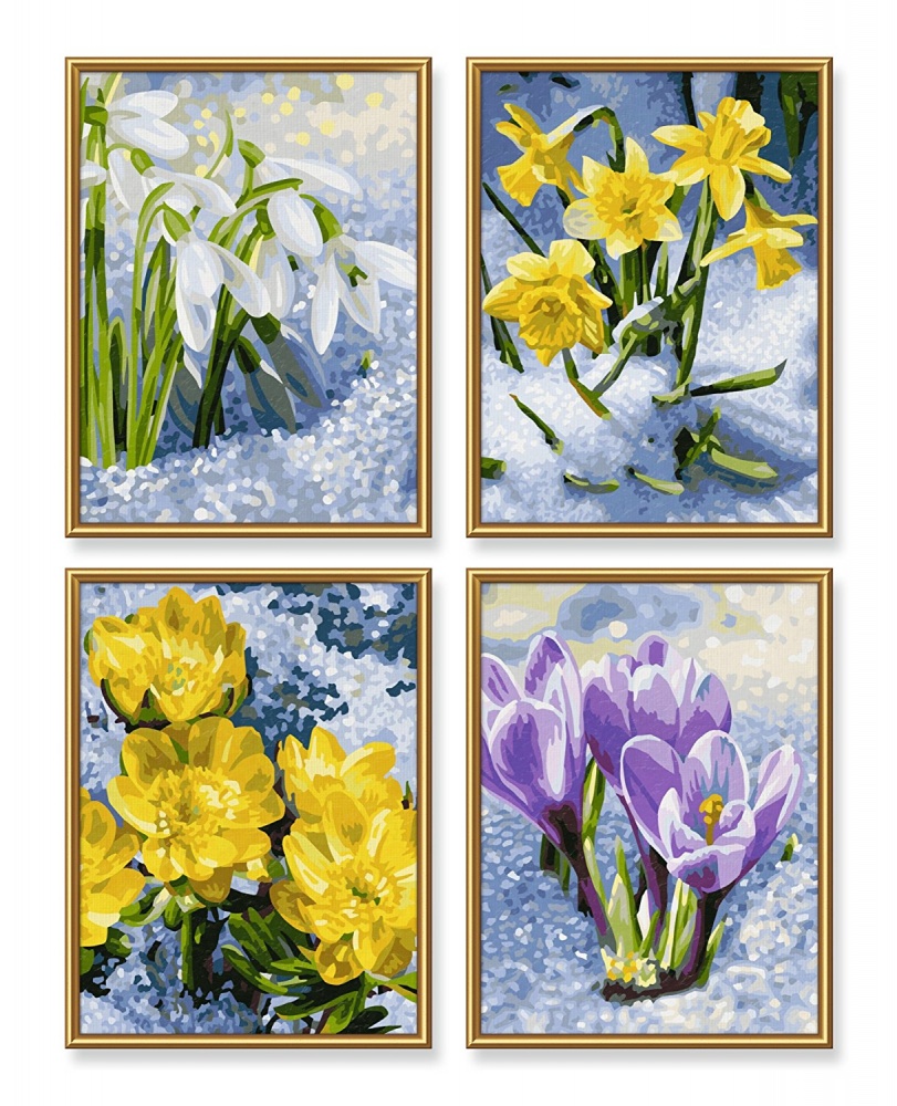 Если ваш ребенок пока только мечтает стать настоящим профессиональным художником, но ему пока не хватает навыков, то Вы можете исполнить детскую мечту, подарив ему это набор. Для раскрашивания не надо особых знаний в живописи и умений, ведь достаточно лишь сопоставлять номера красок и цифры на картонной заготовке, чтобы в итоге получить красочную композицию с изображением первых весенних цветов.