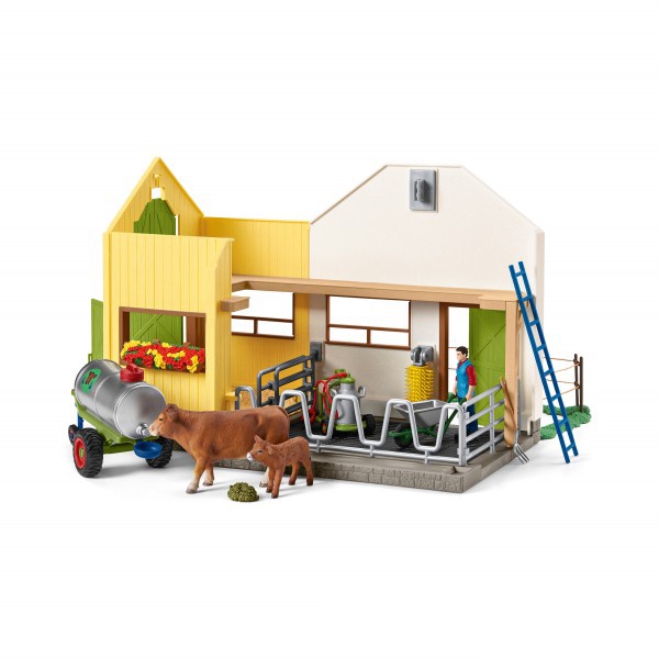 Быть фермером и держать собственное хозяйство - не так просто, как может показаться сперва. В этом вашему ребенку поможет убедиться данный игровой набор. Несмотря на то, что в качестве домашнего скота выступают только корова и ее теленок, работать от этого на ферме не легче и нужно вовремя все успевать.