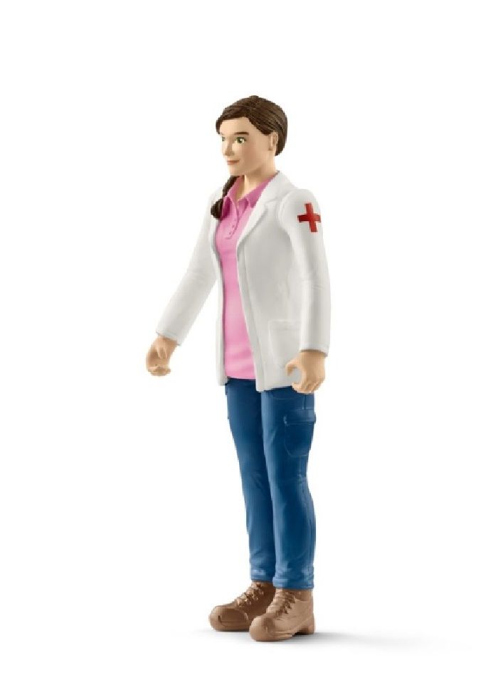 Набор представлен передвижным ветеринарным пикапом на колесах с девушкой-ветеринаром и ганноверским жеребенком.