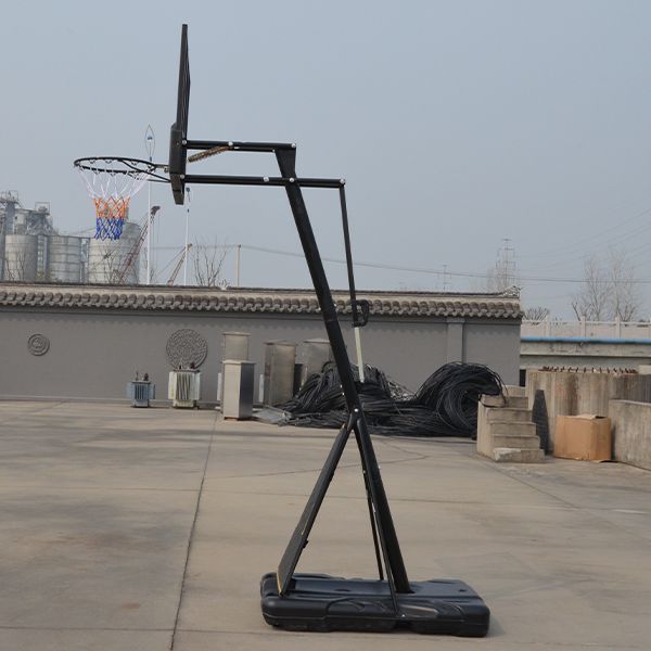Имеет усиленную, устойчивую конструкцию и усиленное металлическое кольцо с амортизаторами для активной игры. Емкость основания заполняется 150 кг воды или песка. Встроенные в основание транспортировочные колеса облегчают транспортировку. Защитная панель основания предохраняет играющих от получения травм.