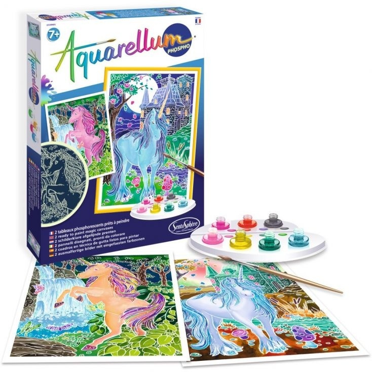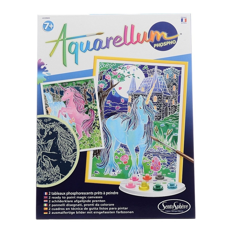 Акварельная раскраска Единорог от французского производителя Sentosphere - уникальный красочный творческий подарок для каждого ребенка, с которым он сможет самостоятельно создать светящиеся в темноте картинки! Всего несколько капель красок и любой ребенок сможет создать собственное произведение искусства. Акварель для детей основана на технике вставки в оправу акварельной краски. Эта техника позволяет краске не затекать за границы. Получившиеся картинки будут светится в темноте, если предварительно поместить их на небольшое время под солнечный свет. Наборы для творчества Сентосфере продаются в ярких красочных коробках и идеально подходят для подарка. Все детали набора изготовлены из высококачественных и гипоаллергенных материалов.