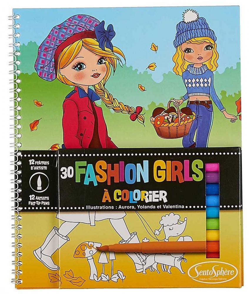 Книга-раскраска SentoSphere Модные девочки с фломастерами