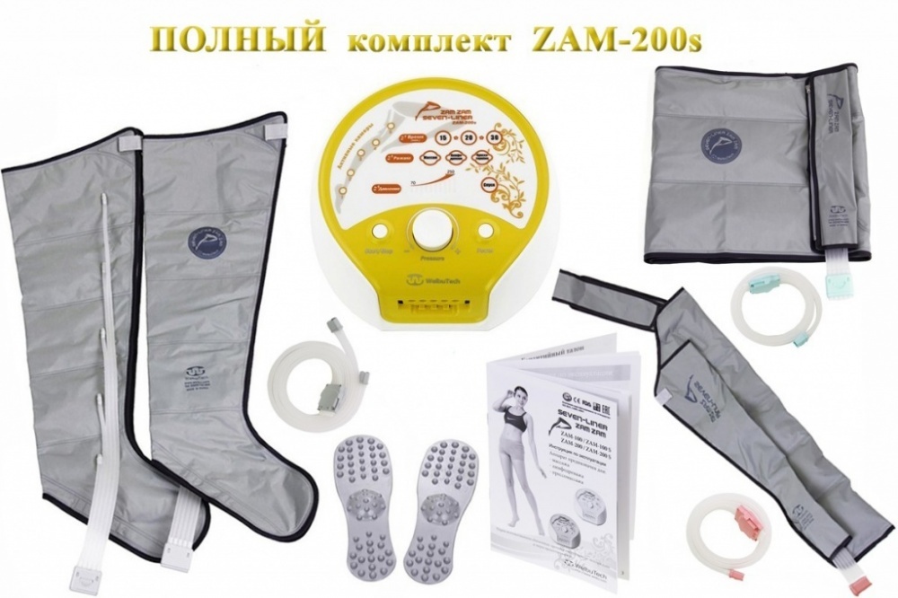 Zam-200s это 3-х режимный пневмокомпрессионный аппарат для массажа, лимфодренажа и прессотерапии ног, рук и талии. Производитель рекомендует модель "ZAM-200S" как лимфодренажный массажёр для домашнего использования, а также в косметических кабинетах и салонах красоты с проходимостью не более 10 человек в день.