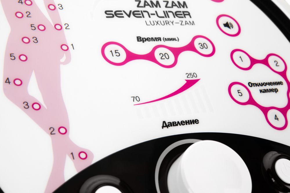 Среди недостатков стоит отметить, что в комплект поставки не входят манжеты для рук и пояс, их нужно приобретать дополнительно. Для проведения прессотерапии ног, а также массажа и лимфодренажа используется аппарат Seven Liner Zam-Luxury.