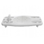 Выполнена в виде пластмассового сидения с ручкой и ножками для фиксации на ванне. Ножки передвигаются в пазах для фиксации на ваннах различного размера.