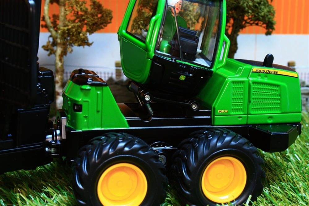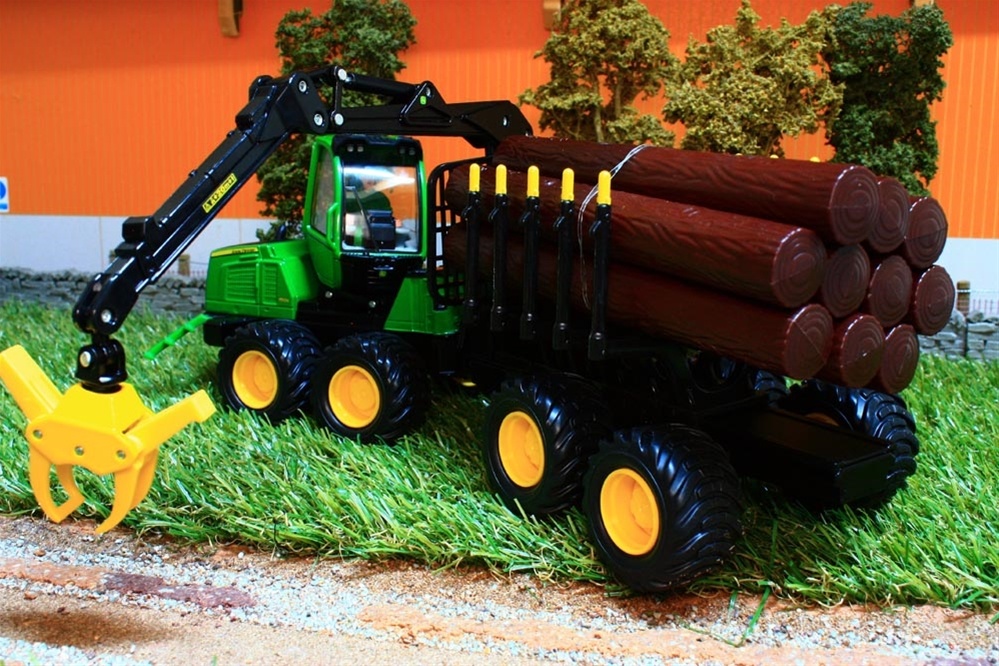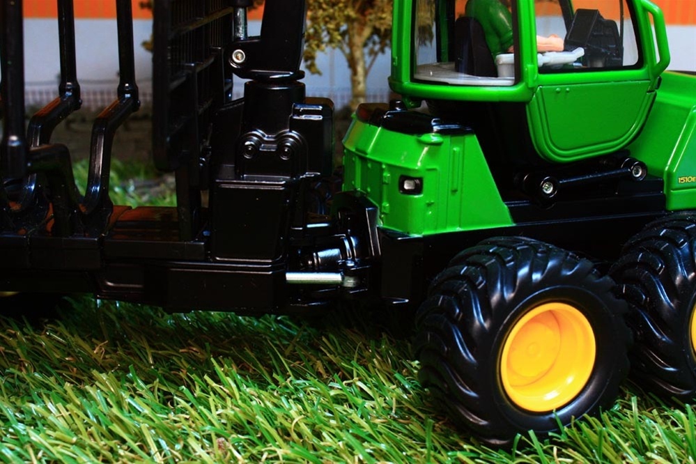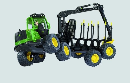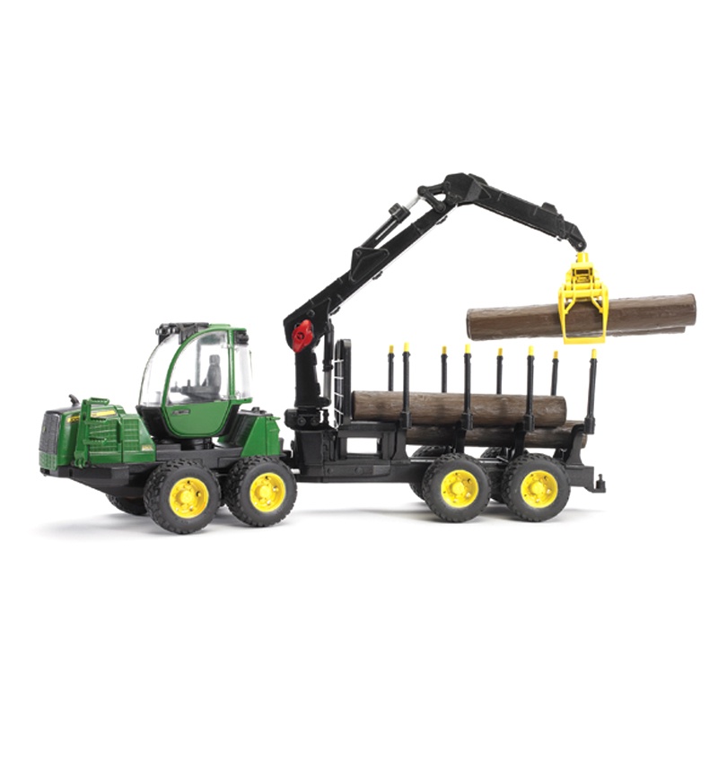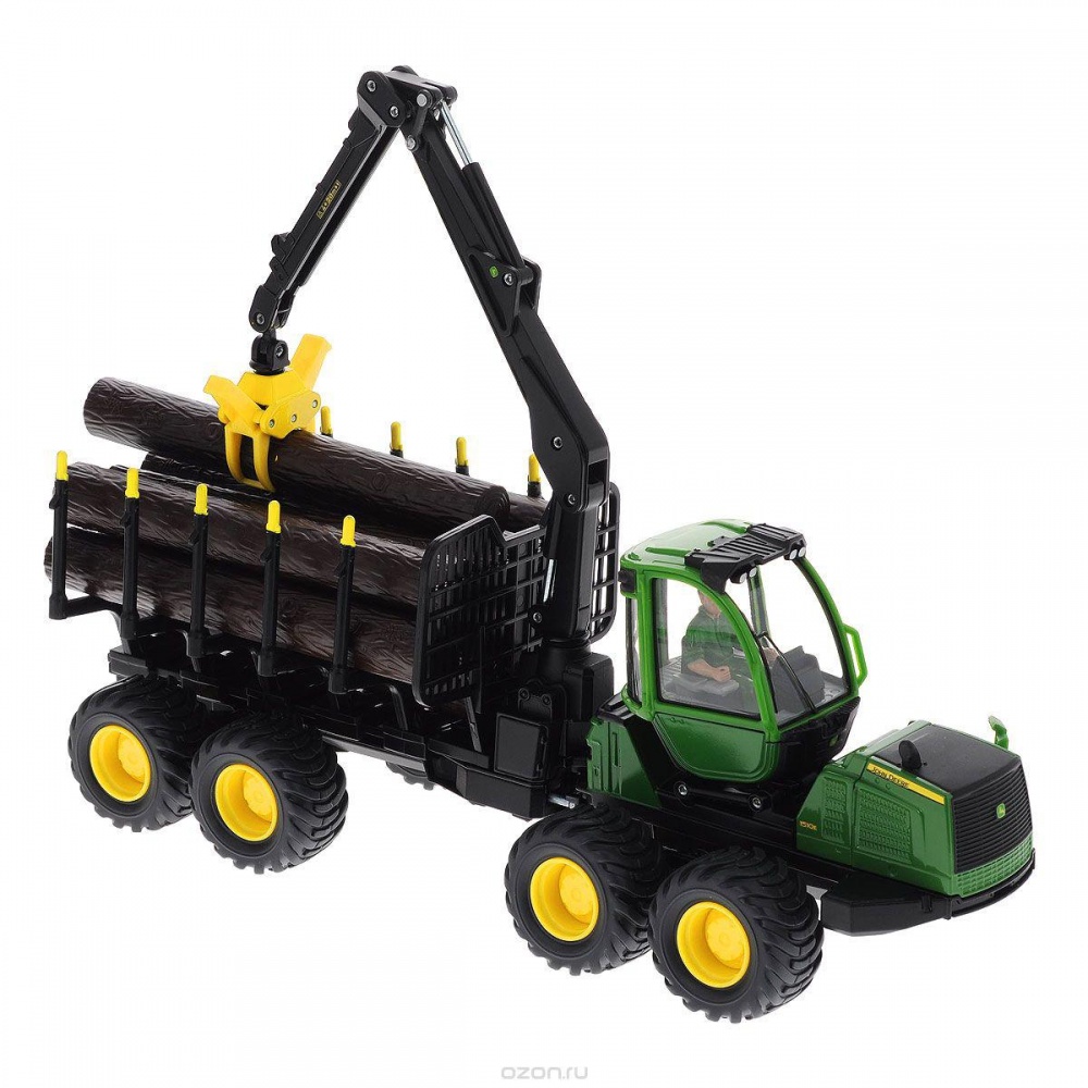 Укладчик бревен John Deer с кузовом представляет собой очень интересную и привлекательную для мальчиков игрушку. Это машинка реалистичного дизайна, которая является уменьшенной копией настоящего лесопогрузчика в 32 раза.