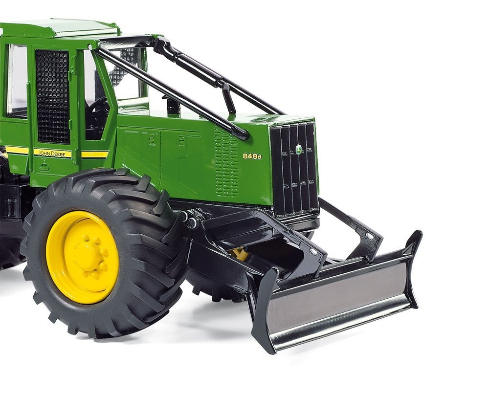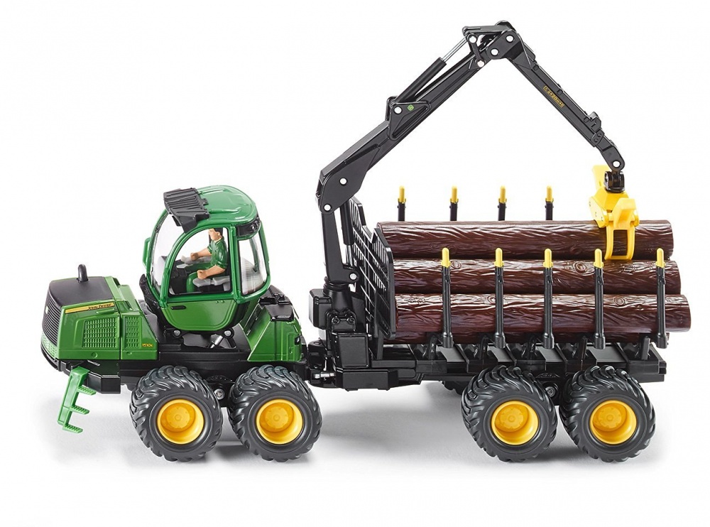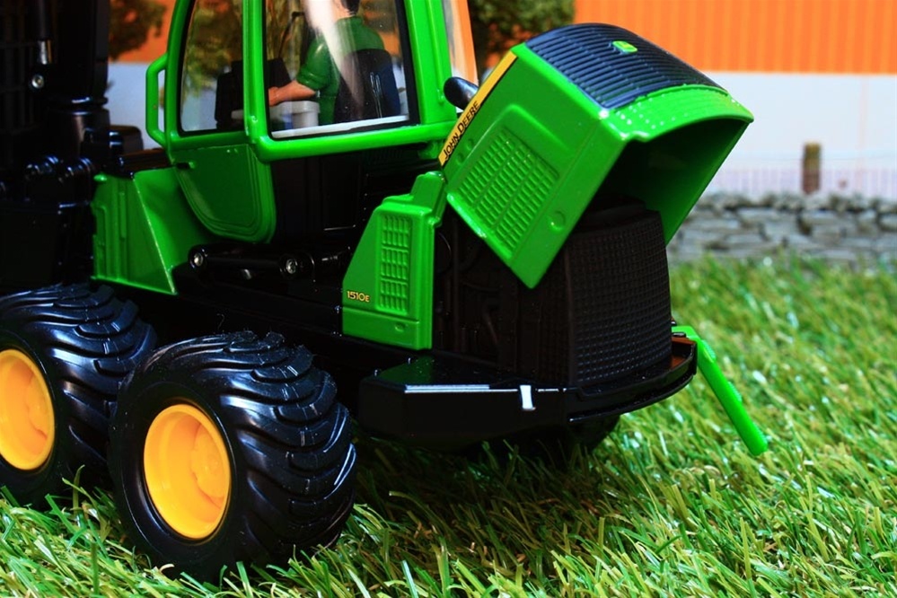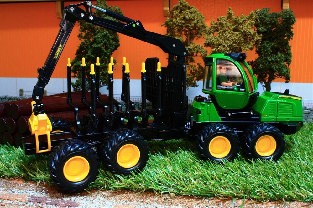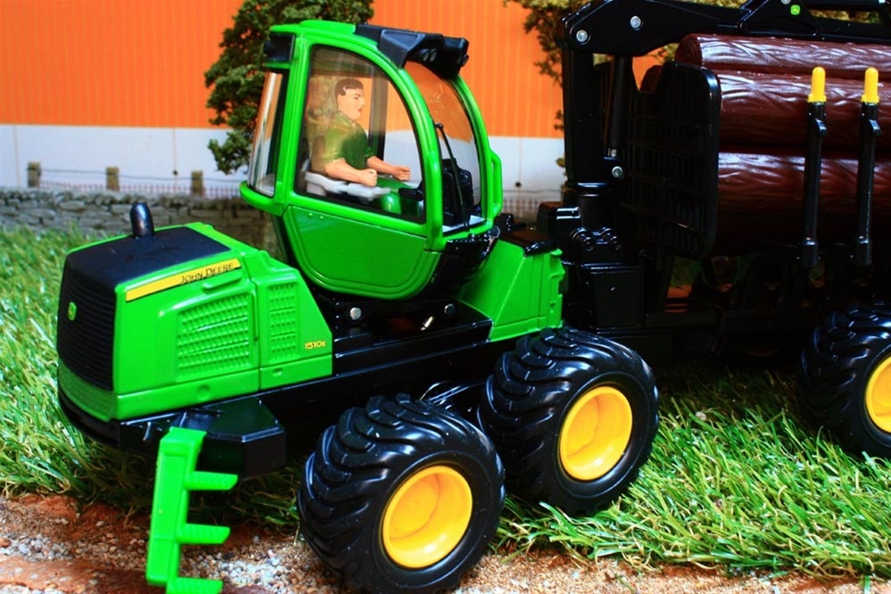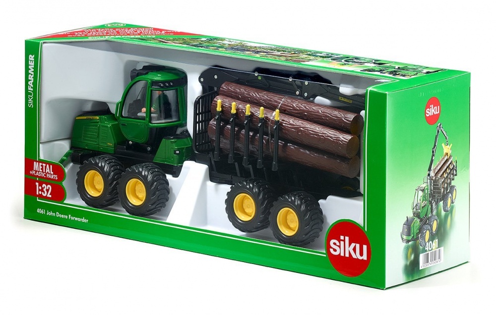 Укладчик бревен John Deer с кузовом представляет собой очень интересную и привлекательную для мальчиков игрушку. Это машинка реалистичного дизайна, которая является уменьшенной копией настоящего лесопогрузчика в 32 раза.