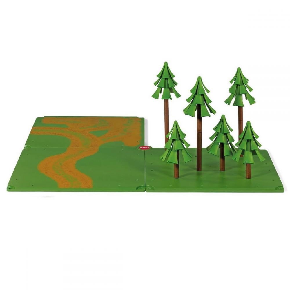 Игровой набор "Грунтовые дороги и леса" от торговой марки Siku состоит из грунтовой дороги, коврика, который имитирует траву, и нескольких деревьев. Все аксессуары тщательно прорисованы и выглядят очень реалистично – они станут прекрасной декорацией для самых разных игр.