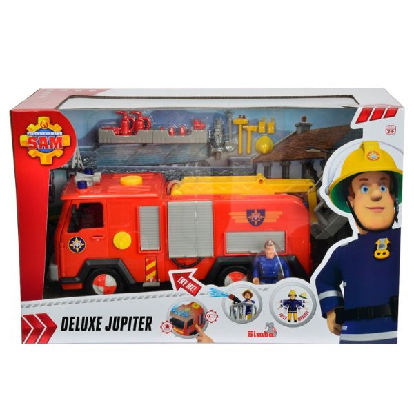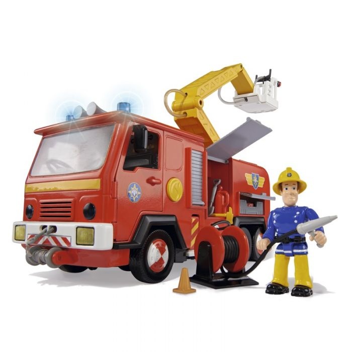 Функциональная машинка может тушить воображаемые пожары настоящей струей воды. Также игрушка оборудована открывающимися дверцами, подвижным подъемным механизмом и ящиками, в которые можно положить маленькие инструменты, входящие в комплект. К пластмассовой машинке прилагается фигурка пожарного Сэма, которая является точной копией героя одноименного детского мультфильма.