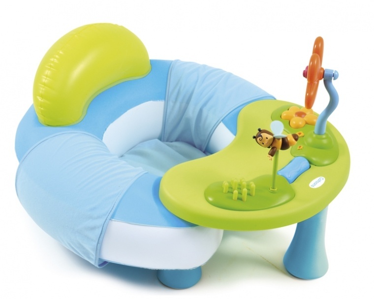 Развивающий надувной игровой центр Cotoons Smoby это очень безопасное и удобное место, чтобы играть. Он удержит ребенка в безопасном положении и защитит от опрокидывания назад или в сторону, пока он еще не может сидеть самостоятельно. Оснащен столиком с игрушками, с которыми никогда не будет скучно, если нет мамы рядом. Когда малыш подрастет, игровой центр можно использовать как сиденье для просмотра любимых мультфильмов.