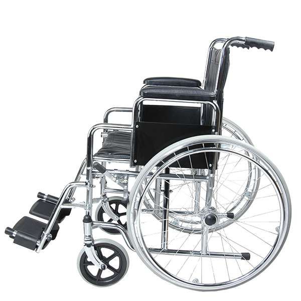 Прочная и надежная стальная рама складывается, благодаря чему кресло занимает мало места при хранении дома или в багажнике легковой машины. Эта модель представлена в нескольких модификациях, отличающихся шириной сидения (38, 41, 43, 46 и 51 см). Сиденье, как и спинка и обтяжка подлокотников выполнены из полиуретана.