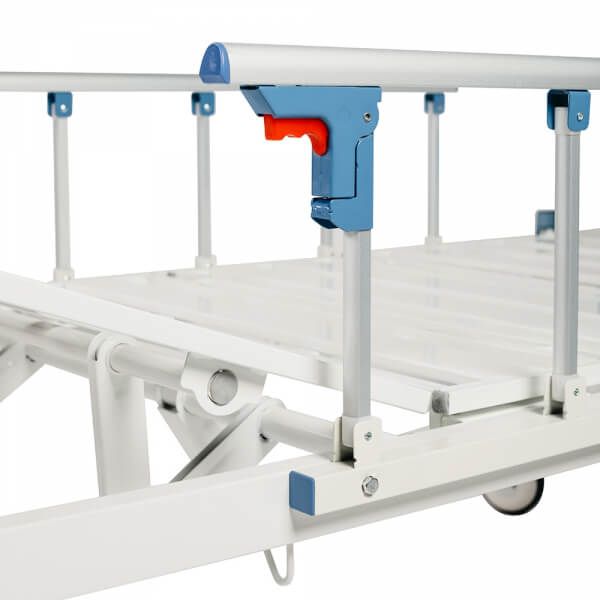 Кровать имеет одну ручку управления для регулировки угла наклона спины. Основание кровати выполнено из стали, покрытой высококачественной порошковой краской, которая обеспечивает качественную, долговременную защиту от внешних воздействий, а также устойчивость к дезинфицирующим средствам.