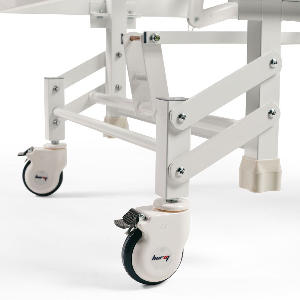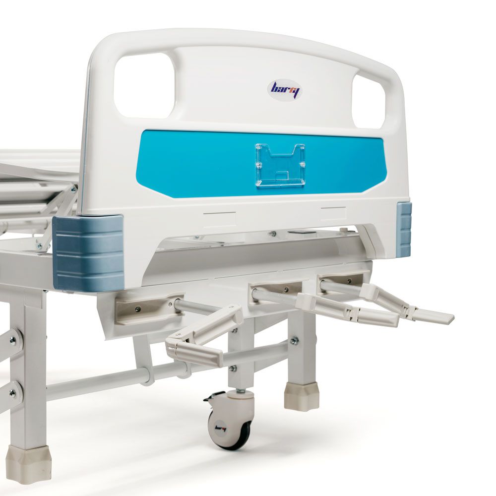 Механическая кровать Barry MB3pp имеет 3 ручки для регулировки спинной и тазобедренной секций, а также высоты кровати. Еще одной отличительной особенностью является наличие прочных перфорированных листов вместо ламелей.