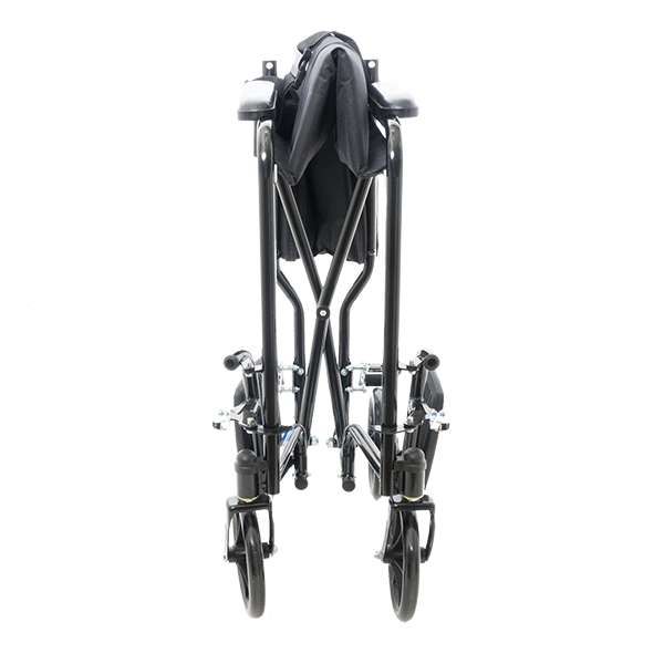 Складное стальное кресло-каталка со складной спинкой и съемными подножками. Материал обивки – надежный, практичный и удобный нейлон. Такой материал легко подвергается чистке и устойчив к воздействию внешних факторов. Каталка легкая, в сложенном виде не занимает много места. Ее легко транспортировать и хранить дома.