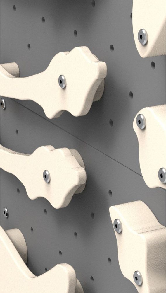 Минималистичный дизайн позволяет установить скалодром в любой комнате. Скалодром отличает многообразие зацепок, позволяет использовать его для самых маленьких.