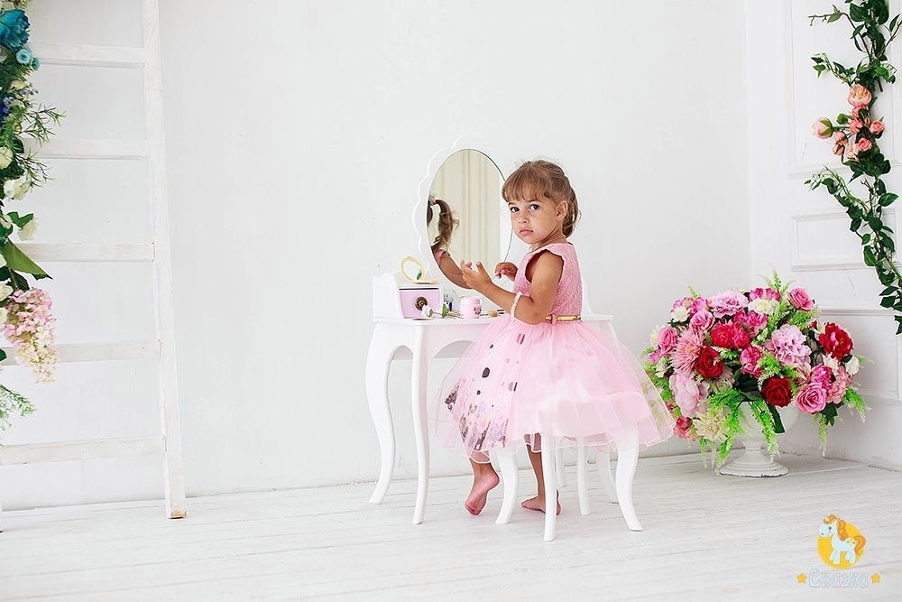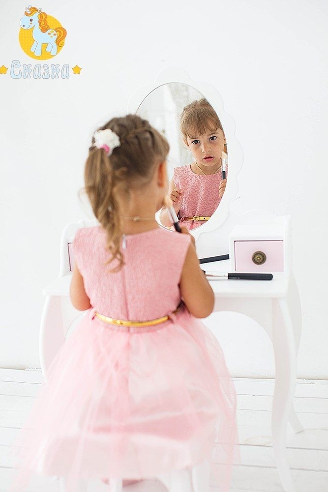 Превратить комнату девочек в красивый будуар теперь можно с помощью всего лишь одного туалетного столика. Ведь изысканный дизайн этого изделия сразу же делает все вокруг себя прекраснее, а в круглое зеркало на трюмо малышки с удовольствием будут рассматривать свое отражение.