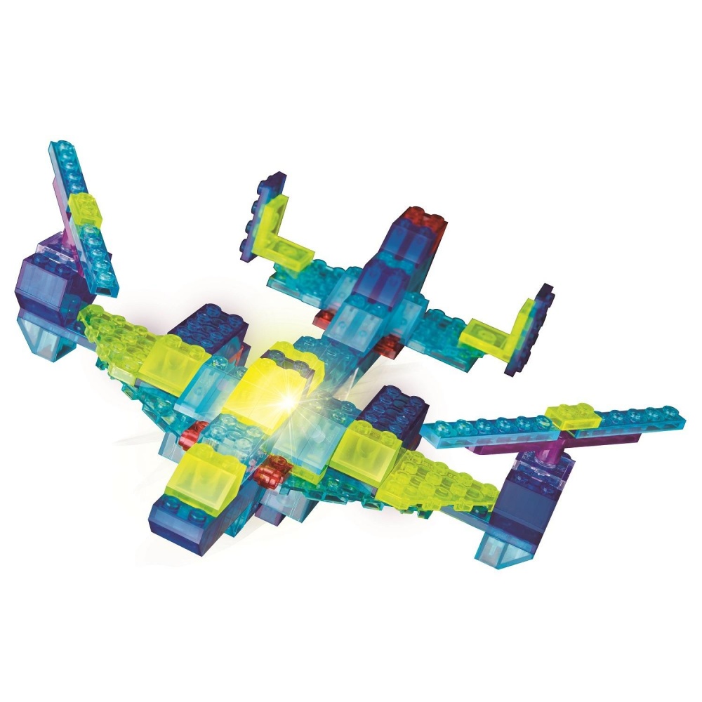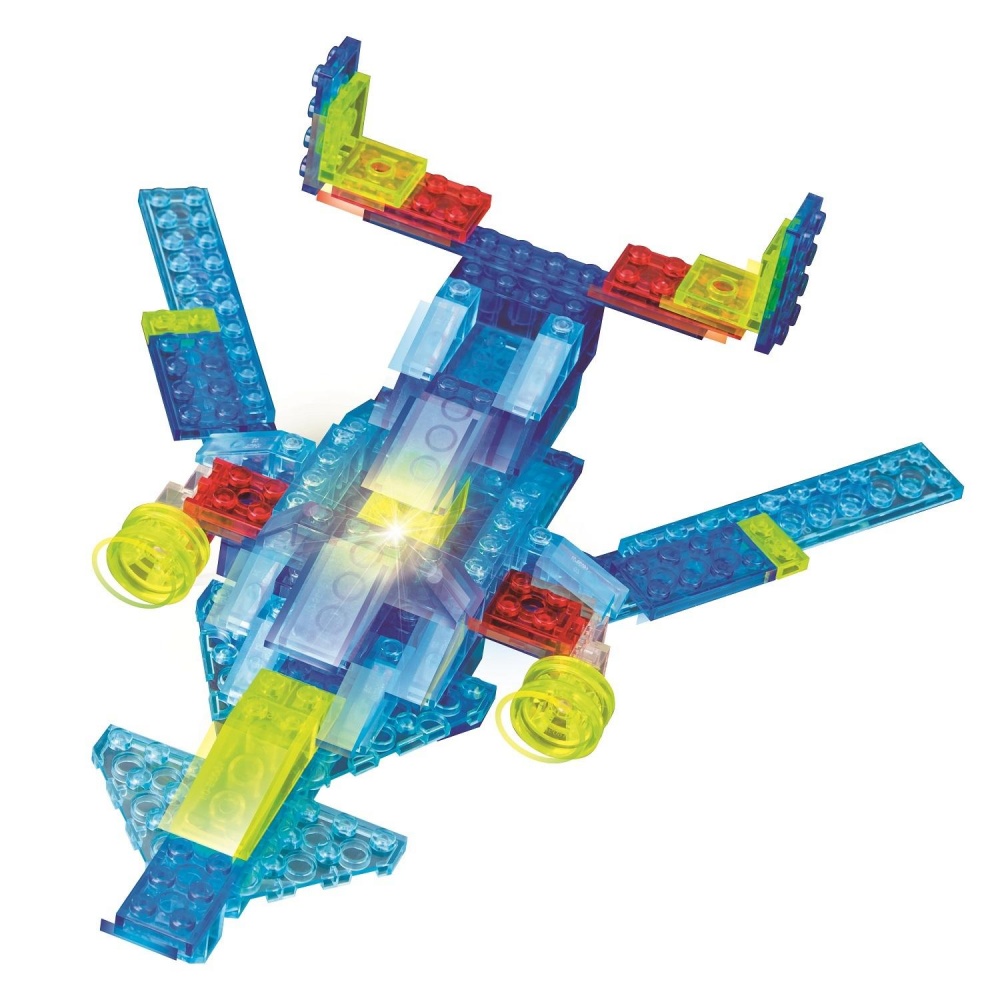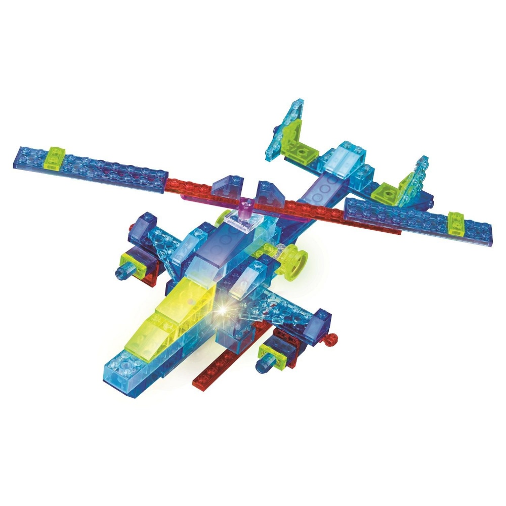 Если мальчику наскучили привычные игры, то предложите ему светящийся конструктор Sky Ray! Это совершенно новое и уникальное решение для увлекательного игрового досуга. Используя яркие цветные детали, ребенок с удовольствием соберет вертолет. Светящиеся элементы разнообразят и украсят детскую игру. В качестве материала изготовления используется пластмасса и нетоксичные, безопасные красители. Имеются две детали со светодиодами. Всего в наборе есть 151 элемент, поэтому ребенок может создавать не только вертолет, но и другие интересные фигуры, развивая свою фантазию и конструкторские навыки.