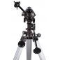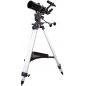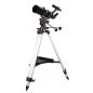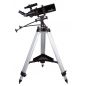 Двухэлементный ахроматический объектив диаметром 80 мм формирует качественную картинку, практически свободную от хроматических аберраций. С помощью этого телескопа можно увидеть фазы Меркурия и Венеры, лунные кратеры, пояса Юпитера, кольца Сатурна, Уран и Нептун в виде дисков, а также объекты дальнего космоса - туманности, галактики и звездные скопления. На линзы нанесено полное многослойное просветляющее покрытие.