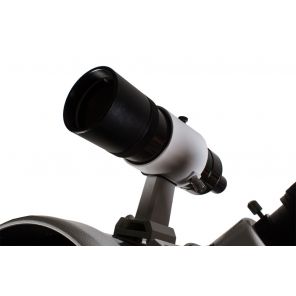 В фокусер трубы можно устанавливать любые аксессуары 1,25'' или 2'' через адаптер. В комплект поставки уже включен окуляр LET 28 мм и диагональное зеркало 90°. С помощью последнего удобно изучать наземные объекты и объекты в околозенитной области. Зеркало правильно ориентирует изображение в телескопе, делая его неперевернутым. Для наведения трубы на объекты используется оптический искатель 9х50. Фокусировка осуществляется при помощи главного зеркала. При необходимости возможна юстировка трубы.