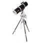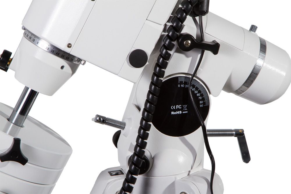 Экваториальная монтировка позволяет компенсировать суточное движение объектов во время наблюдений и астрофотографии. Монтировка снабжена моторными приводами по обеим осям. Для управления Sky-Watcher HEQ5 используется удобный пульт. База данных содержит координаты 42 000 астрономических объектов.