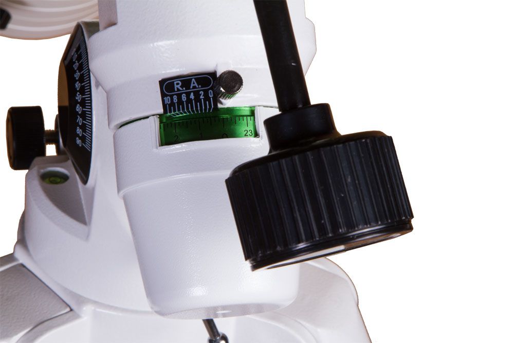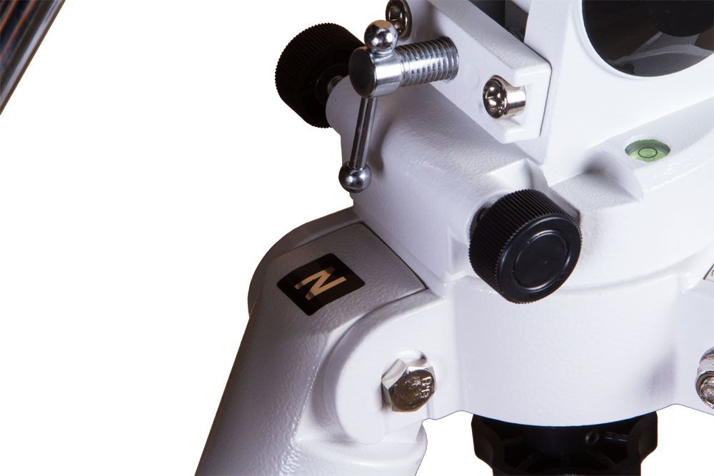 Монтировка комплектуется мощной стальной треногой NEQ5. Она надежная и прочная – крупный телескоп стоит на ней устойчиво даже в ветреный день. Высоту ножек треноги можно регулировать. Лоток для аксессуаров включен в комплект поставки.