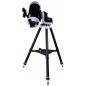 Основная особенность телескопа – азимутальная монтировка с компьютерным наведением. Моторные приводы обеспечивают мягкий и ровный ход, не создают рывков и колебаний. Оптическая труба движется плавно, поэтому фотографировать можно даже на длинных выдержках. Для управления используется смартфон. Необходимо загрузить и установить на мобильное устройство бесплатное приложение «SynScan» (доступно в официальных магазинах App Store и Google Play), после чего откроется доступ ко всем возможностям автонаведения. База данных приложения позволяет быстро наводить телескоп на десятки тысяч астрономических объектов. При необходимости к монтировке можно присоединить стандартный пульт SynScan (приобретается отдельно).