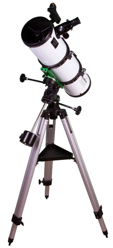 Благодаря 130-миллиметровому объективу телескоп эффективно собирает свет – на 30% лучше, чем аналогичные модели с апертурой 114 мм. Фокусное расстояние небольшое, поэтому оптическая труба достаточно компактная, что делает телескоп более устойчивым и легкоуправляемым. В комплект поставки включены базовые оптические аксессуары - два разнофокусных окуляра и искатель с красной точкой. Зеркало не юстируется.