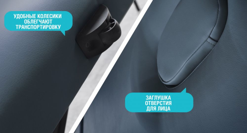 Модель обеспечит максимальный комфорт клиенту во время массажа спины, шеи и ног. В спинке есть удобное анатомическое отверстие для лица. Высота массажного стола оптимальна для проведения процедур. Для хранения и удобной транспортировки массажное оборудование легко складывается до размеров чемодана.