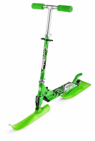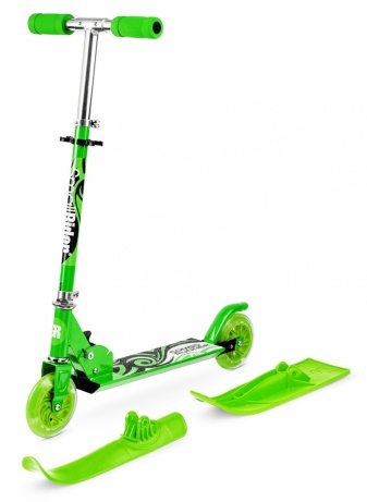 Зеленый самокат с лыжами Combo Runner 120 для детей 5-10 лет. На нем можно кататься в парке летом или рассекать по заснеженным дорожкам зимой.