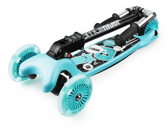 Трёхколёсный самокат Small Rider Randy Flash со складной ручкой оснащён светящимися колёсами и специальной наклонной системой управления. Самокат весит около 2 кг и очень компактен, в сложенном виде помещается даже в сумку. Ручка регулируется по высоте и снабжена эргономичными резиновыми ручками, которые вытаскиваются. Детский самокат поставляется в разобранном виде.