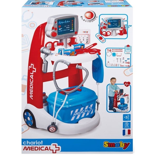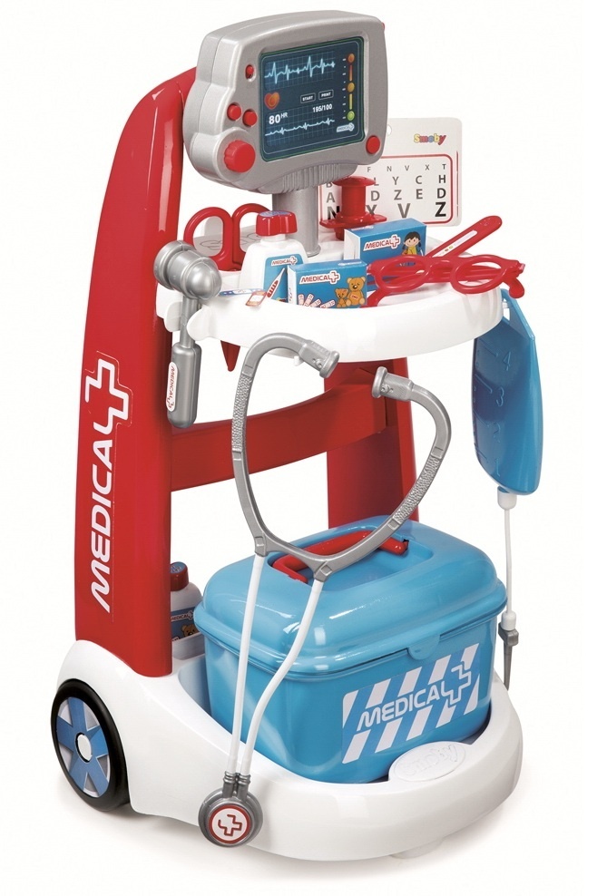Интерактивная медицинская тележка Smoby - целый передвижной госпиталь для юных докторов и их пациентов. С таким замечательным набором все домашние будут здоровы! Набор представляет собой удобную тележку с необходимыми медицинскими инструментами.