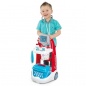 Тележка на 2 больших колесах имеет полочку и ручку, за которую тележку удобно толкать перед собой. Электронная тележка доктора содержит аксессуары, необходимые для работы юного доктора. Медицинские приборы выглядят особенно реалистично благодаря наличию звуковых эффектов. Мобильная тележка устойчива, она легко передвигается.