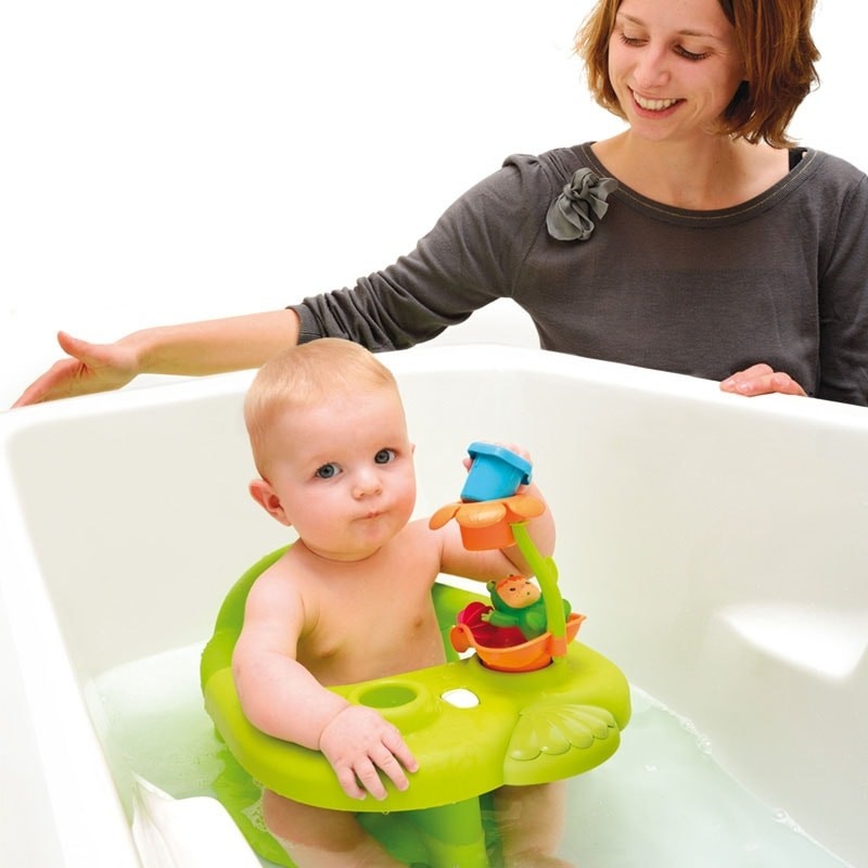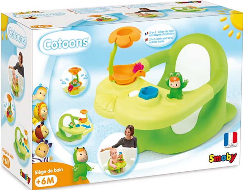 С помощью стульчика Сotoons ваш малыш будет принимать ванну с удовольствием и с нетерпением ждать следующего купания. Это приспособление можно использовать, как только ребенку исполнится полгода. Яркий дизайн и комплектация забавными игрушками-аксессуарами позволяет детям резвиться в воде и быть в хорошем настроении. Изделие прочно закрепляется в ванной и не сдвигается. Кроме того, стульчик развивает моторику ребенка. Он окрашен в успокаивающий зеленый цвет, который благотворно влияет на эмоциональное состояние малыша. В качестве основного материала используется пластик. Стульчик для купания имеет безопасные скругленные углы, удобную перемычку между ног и панель с игрушками.