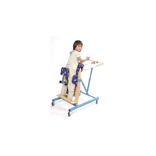 Вертикализатор с наклоном вперед для развития навыка стояния у детей со спастической диплегией, спастической гемиплегией и атонически-астатической формой ДЦП. Угол наклона вертикализатора регулируется, позволяя увеличивать и уменьшать нагрузку на нижние конечности. Для фиксации ребенка предусмотрены боковые и коленные упоры, страховочный пояс и спинной прижим. Находясь в вертикализаторе, ребенок опирается на столик и может играть, рисовать, выполнять упражнения. Выпускается в трех размерах.