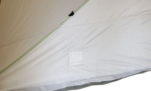 Палатка оснащена: двумя входами; четырьмя вентиляционными окнами со съемными прозрачными клапанами, которыми можно регулировать поток поступающего воздуха в палатку; двумя клапанами притока свежего воздуха; двумя сетчатыми полками на потолке и двумя сетчатыми карманами на стенах палатки, в которые очень удобно складывать снаряжение.