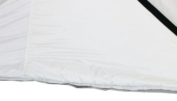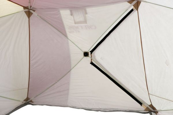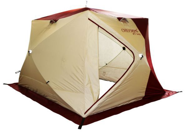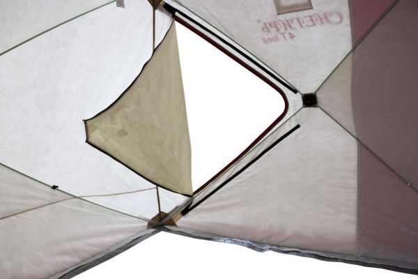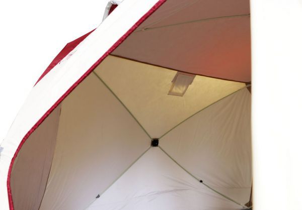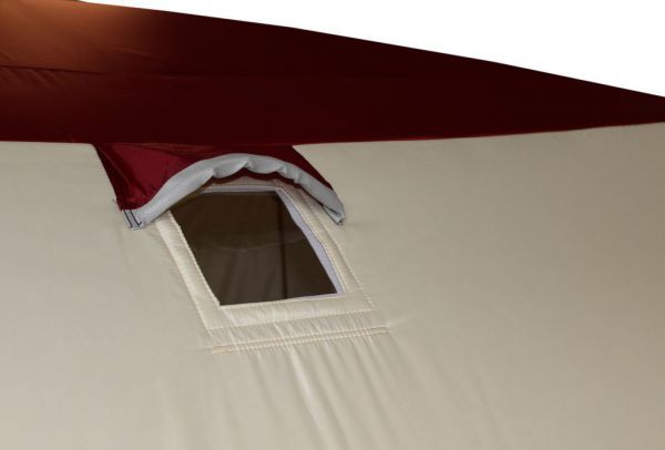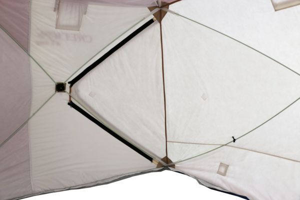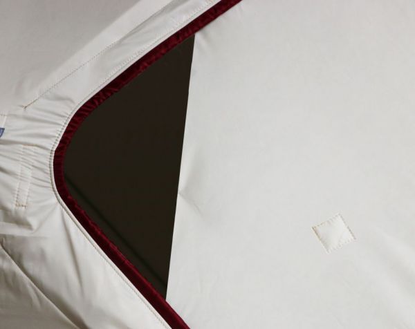 Стены палатки изготовлены из двух слоев водоотталкивающей ткани Oxford 240D с полиуретановым покрытием, между которыми находится толстый слой утеплителя, синтепона плотностью 150г/м2. Светлые ткани, используемые на внутренней части стен, обеспечивают отличную видимость внутри палатки, даже без открытия шторок на окнах. Каркас изготовлен из надежных пластиковых хабов и стеклокомпозитных материалов собственного производства, обладающих повышенной прочностью и жесткостью, благодаря чему палатке не страшен самый сильный ветер.