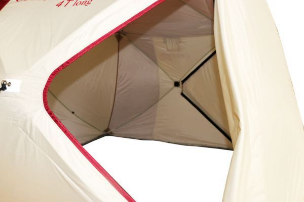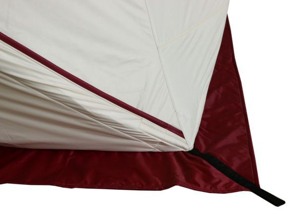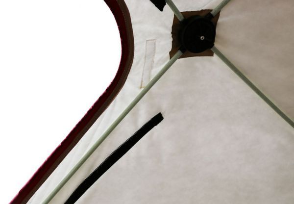 Также палатка оснащена двумя внутренними юбками с системой крепления пола, которая полностью исключает проникновение холодного воздуха внутрь палатки, что очень важно для рыбалки при сильном ветре и низкой температуре.